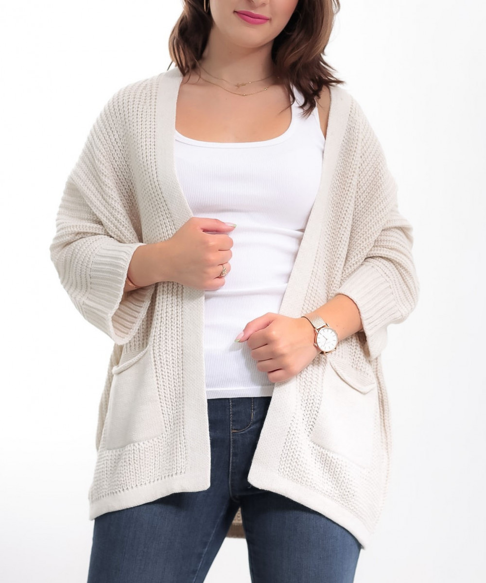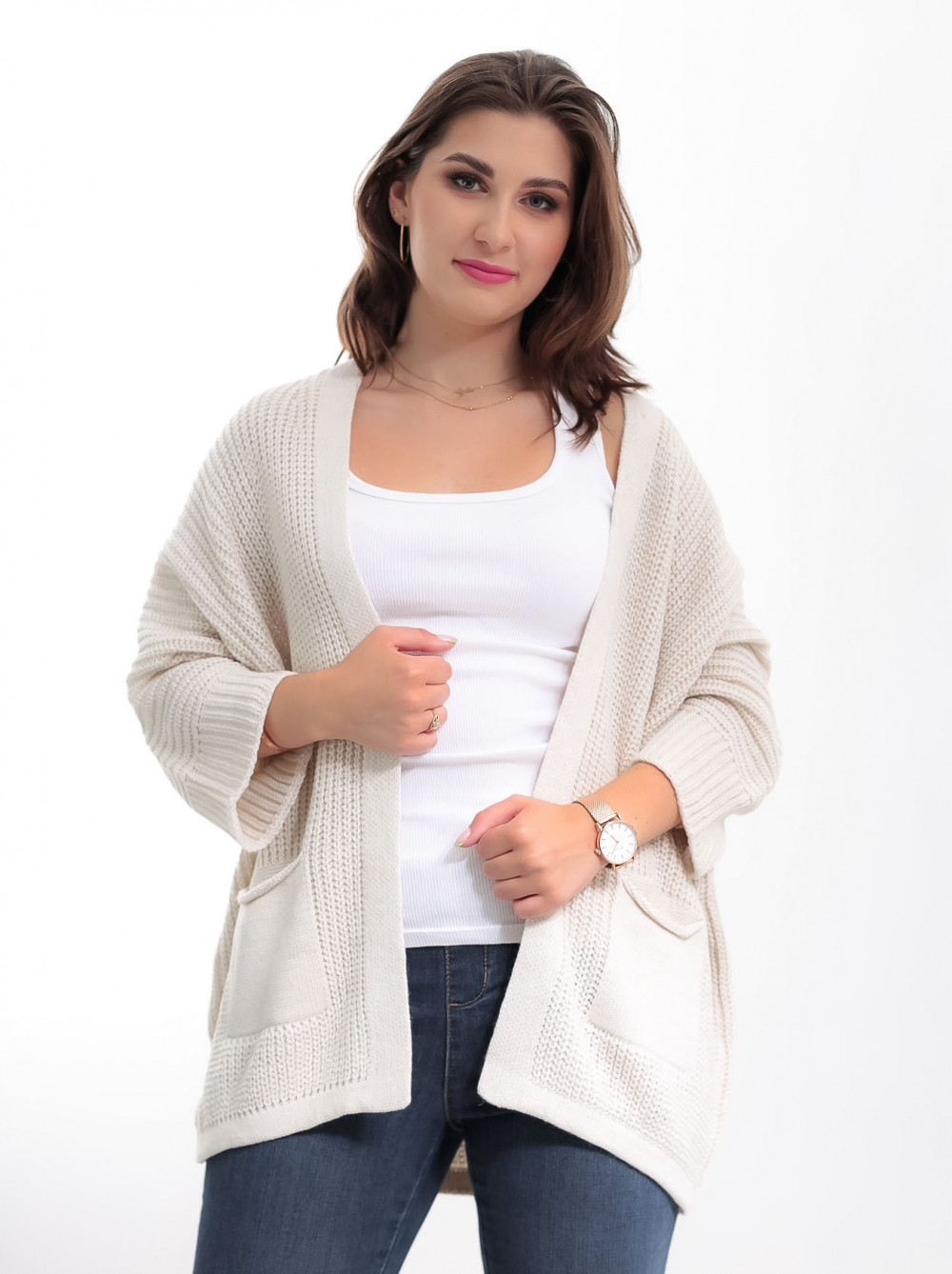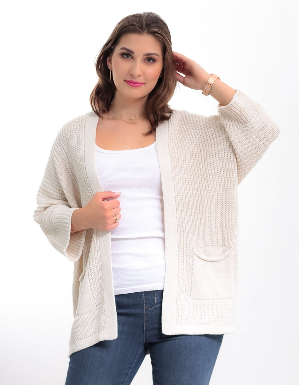Kardigan sweter damski w kolorze kremowym z kieszeniami luźna narzutka Parma