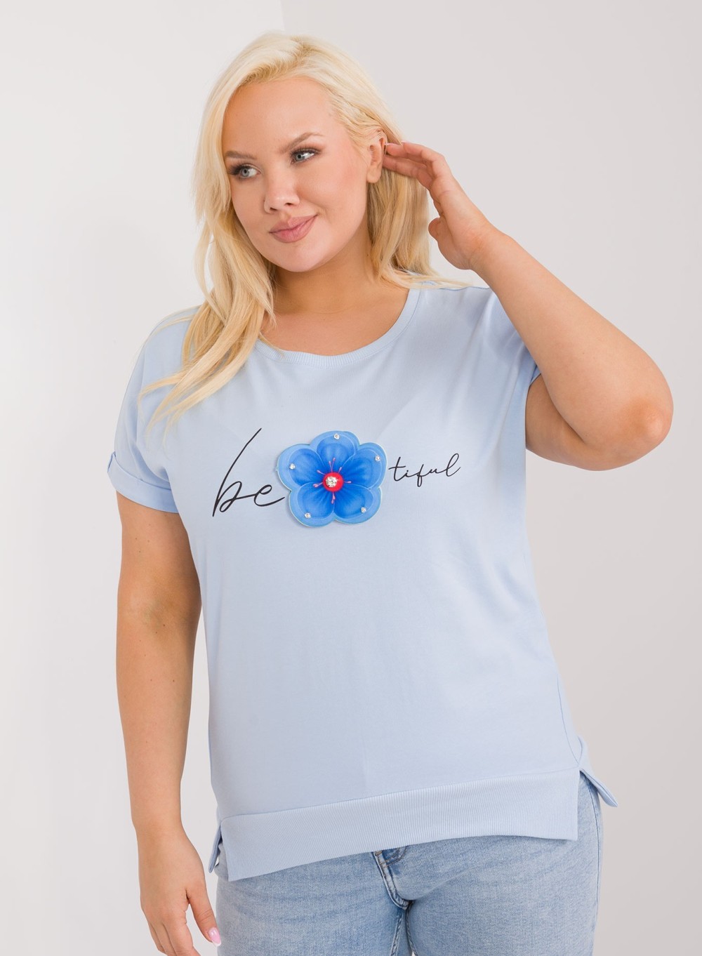 Bluzka damska plus size w kolorze błękitnym aplikacja kwiatka 3d cyrkonie Larisa