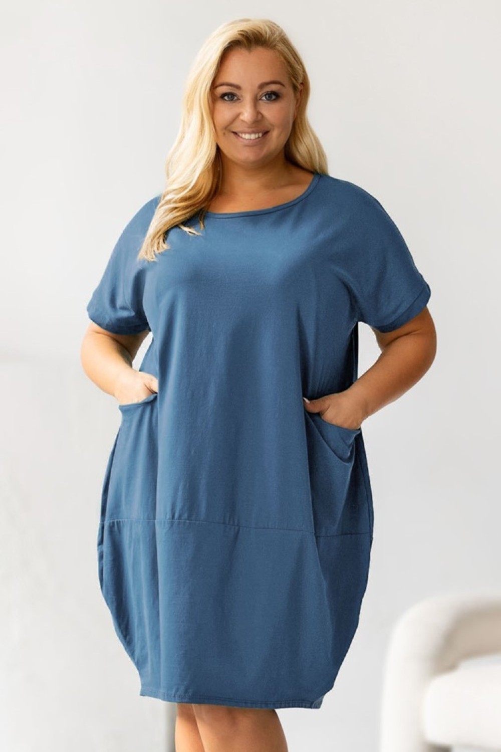 Bawełniana sukienka plus size w kolorze denim z kieszeniami przeszycie Miley