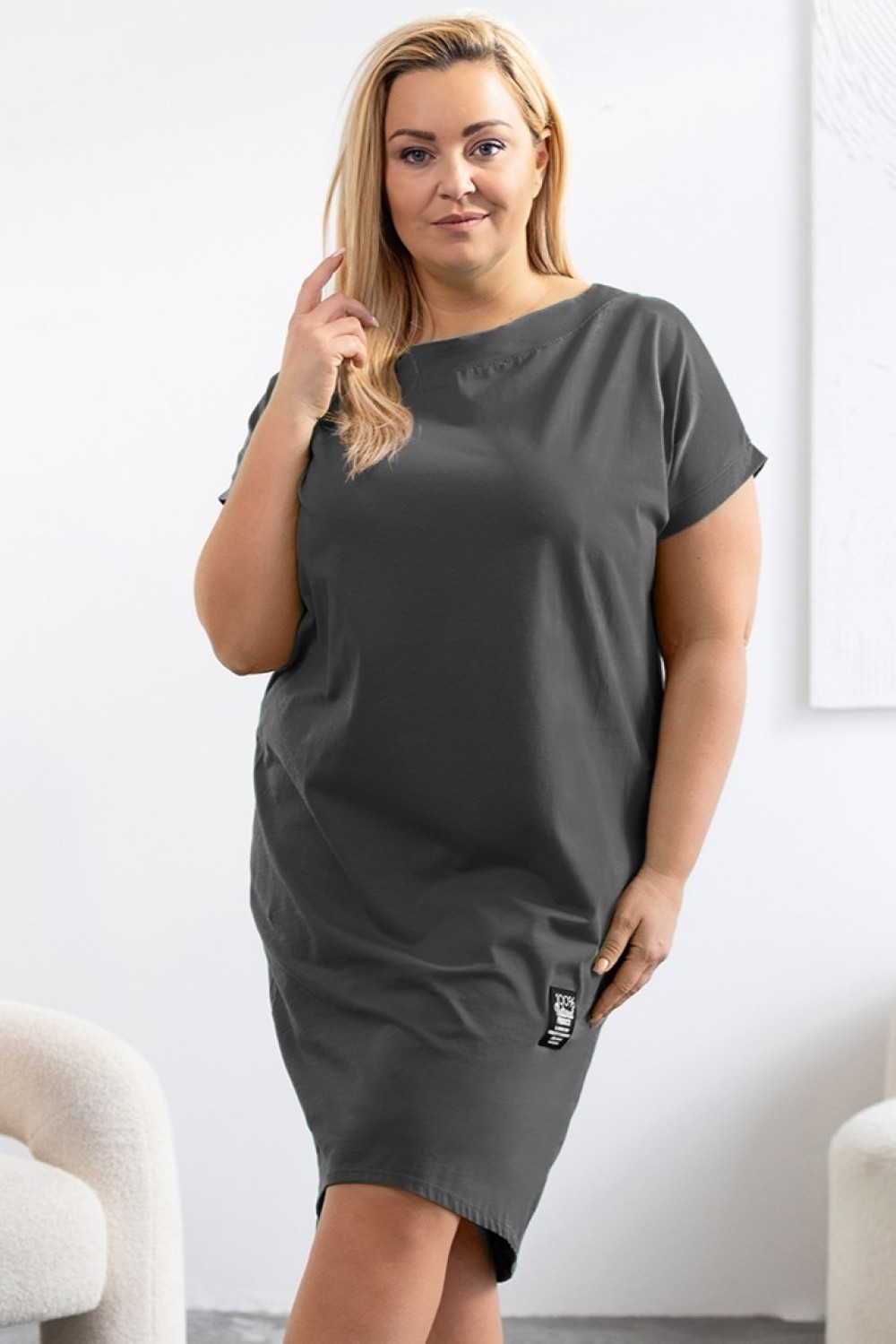 Sukienka plus size w kolorze grafitowym z krótkim rękawem naszywka Bonita