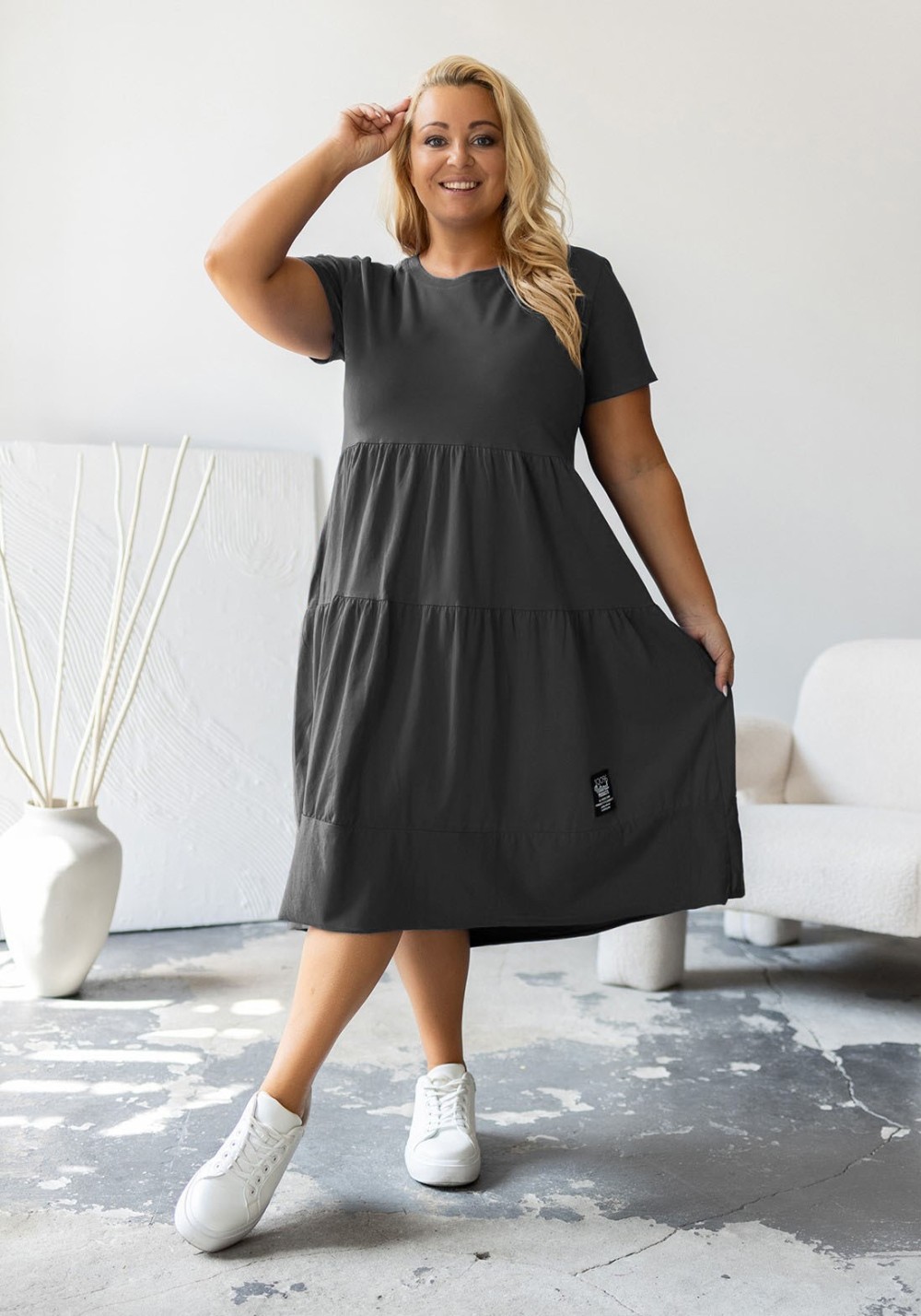 Sukienka plus size w kolorze grafitowym krótki rękaw falbany Agnes