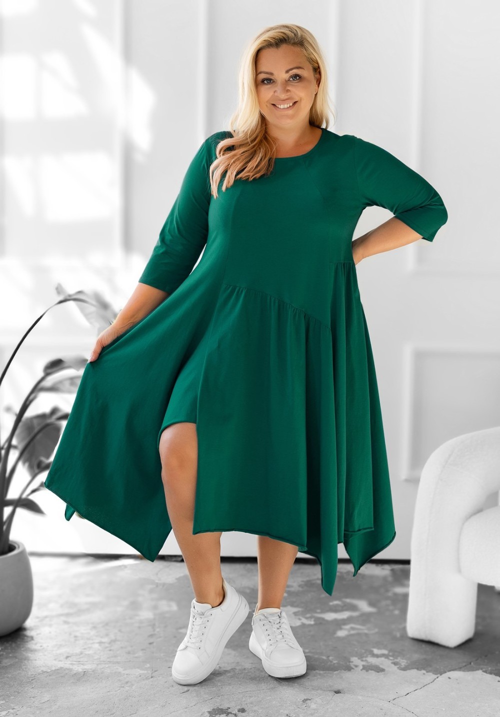MEGA oversize sukienka w kolorze butelkowym rękaw 3/4 przeszycia kieszenie PALOMA