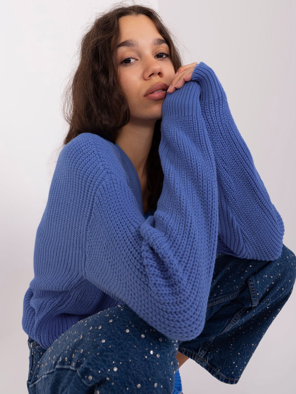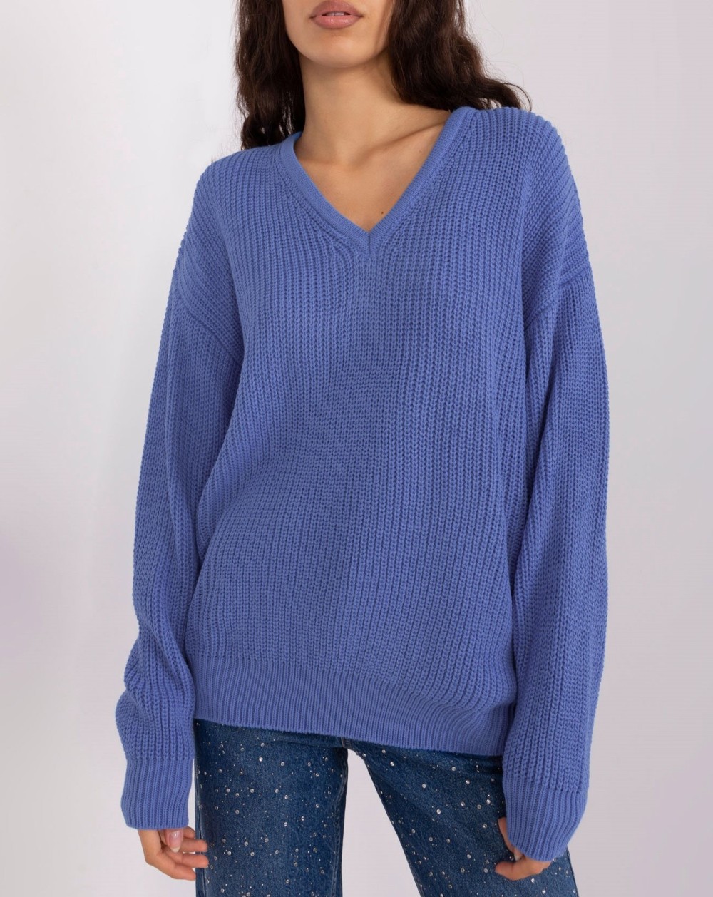 Sweter damski w kolorze niebieskim dekolt w serek V Adina