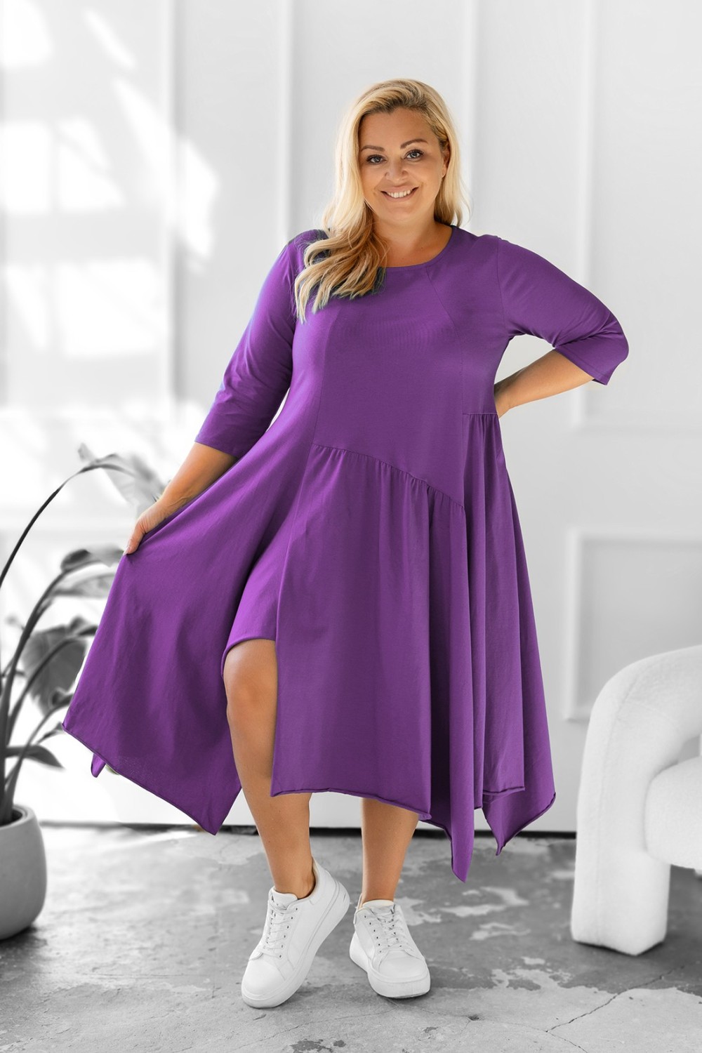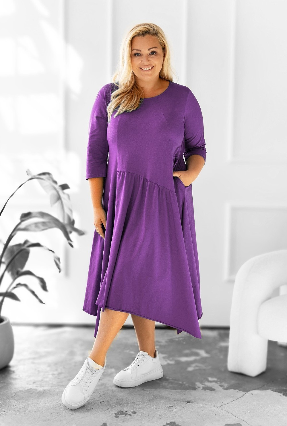 MEGA oversize sukienka w kolorze jagodowym rękaw 3/4 przeszycia kieszenie PALOMA