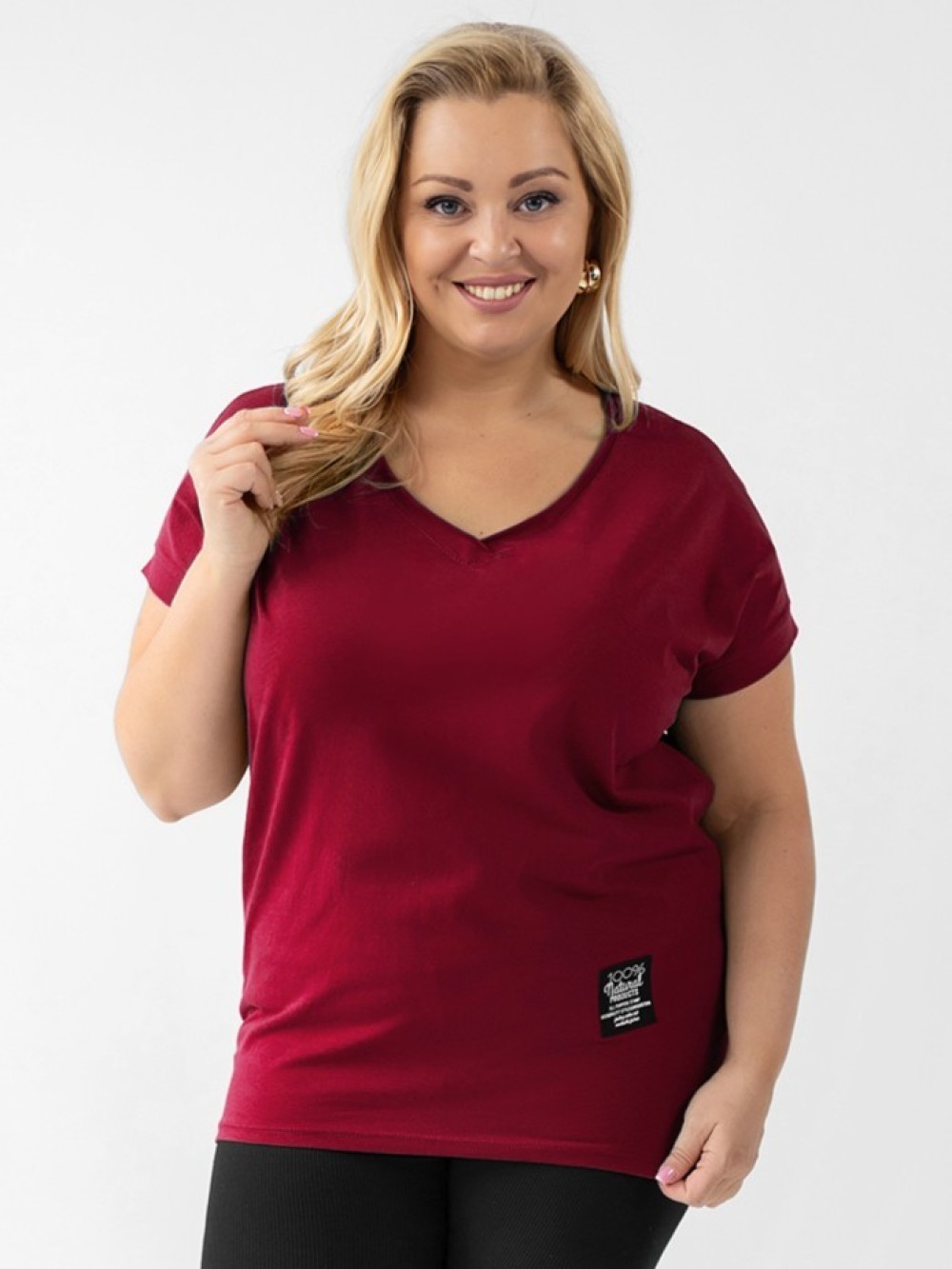 Bluzka w kolorze burgundowym z dekoltem w serek. Dłuższy tył i swobodny fason zagwarantuje komfort noszenia. Bluzka z krótkimi, szeroko skrojonymi rękawami świetnie sprawdzi się jako podstawa casualowych i sportowych looków. Doskonała do jeansów, legginsów czy klasycznych spodni. Bluzka dostępna również w innych kolorach.