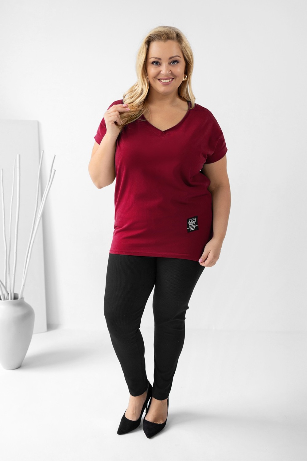 Luźna bluzka damska w kolorze burgundowym dekolt w serek V casual Gabby