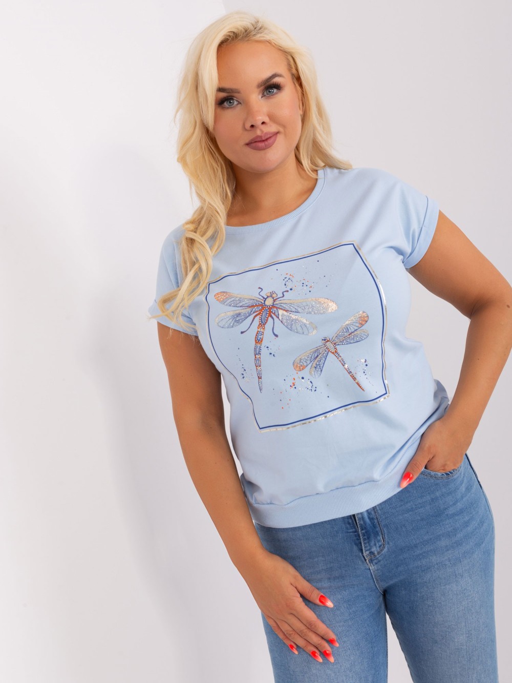 Bluzka damska w kolorze jasnoniebieskim złoty nadruk ważki dżety Roksana