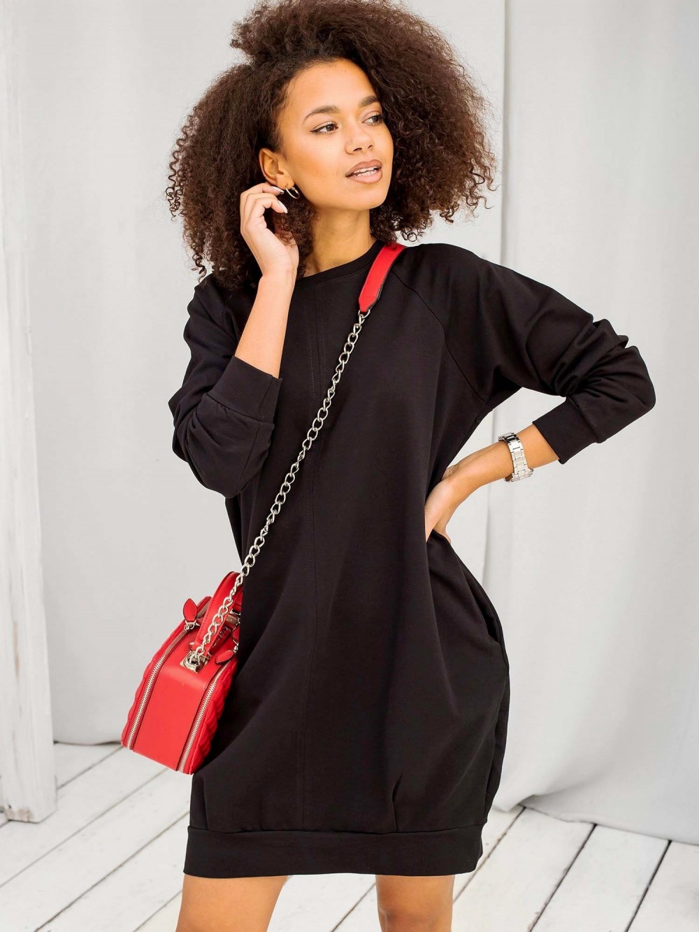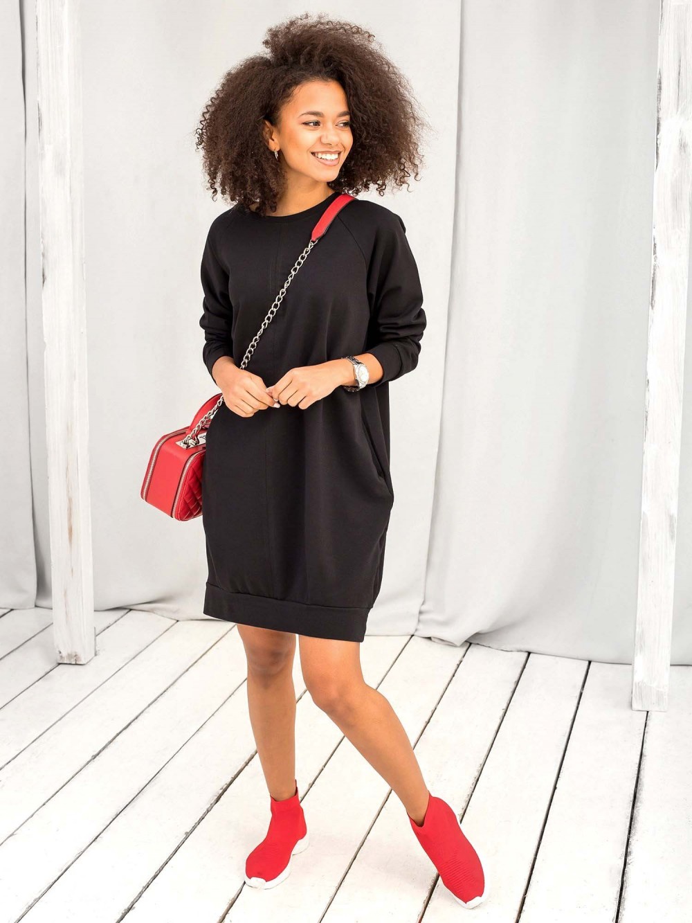 Sukienka dresowa w kolorze czarnym z kieszeniami basic isla