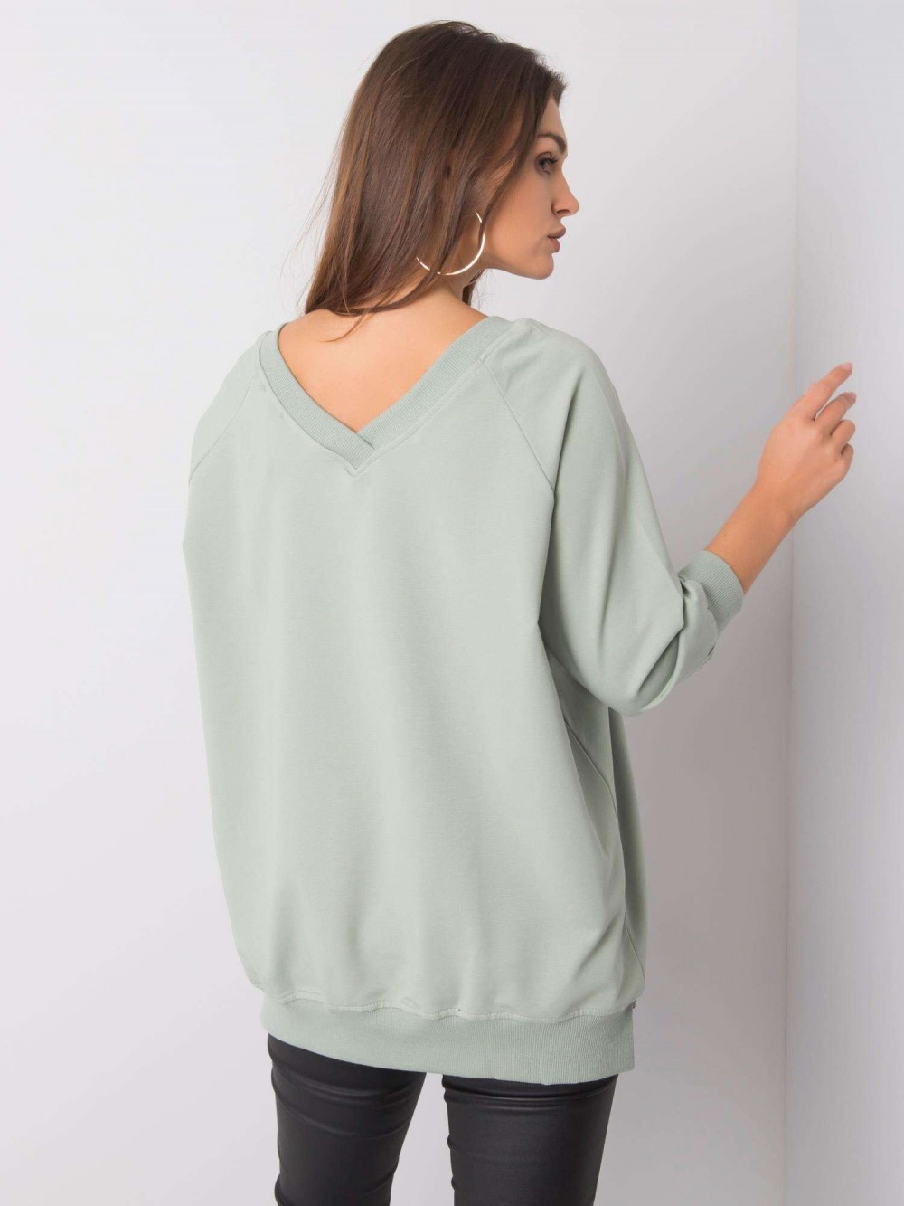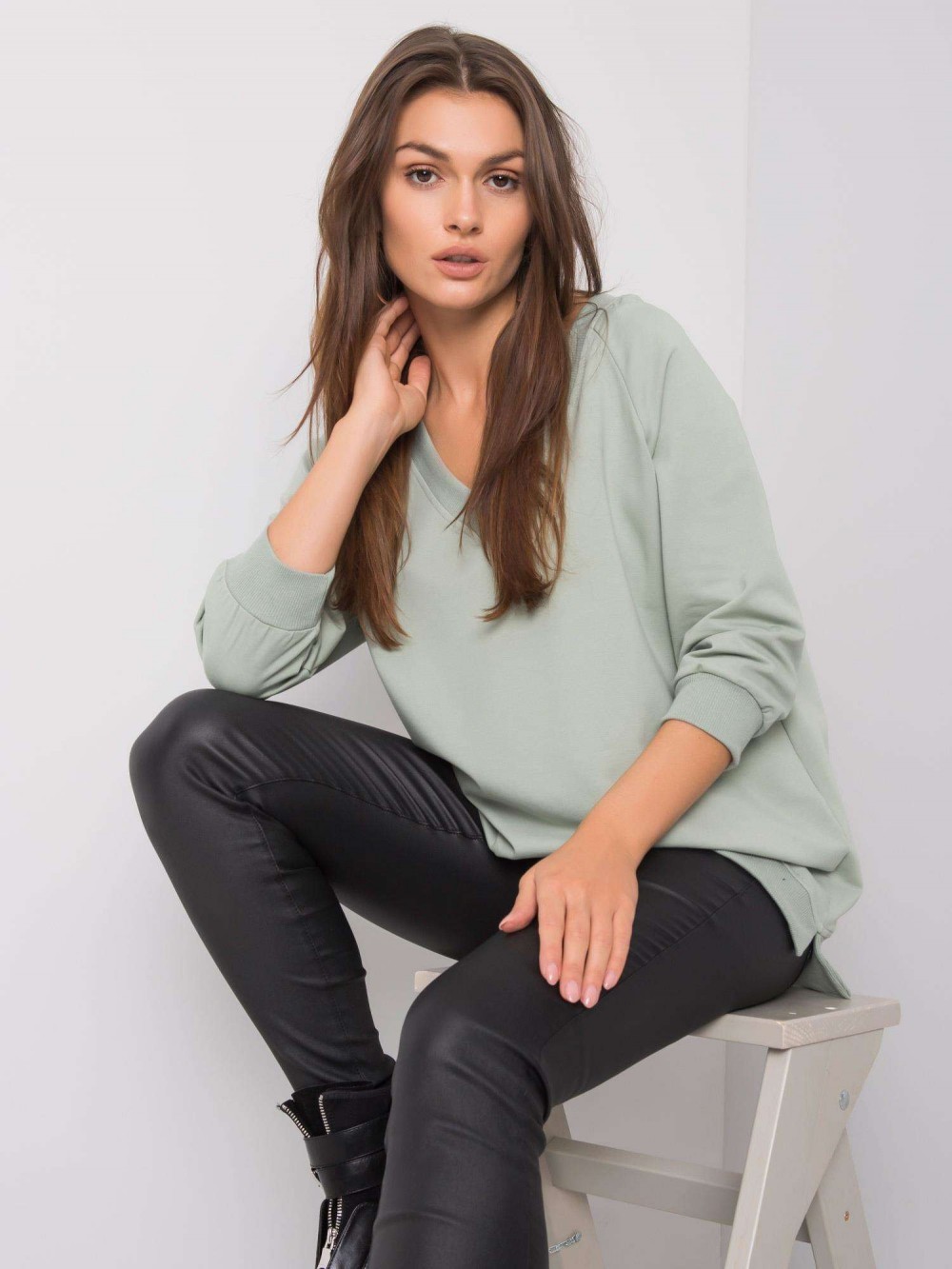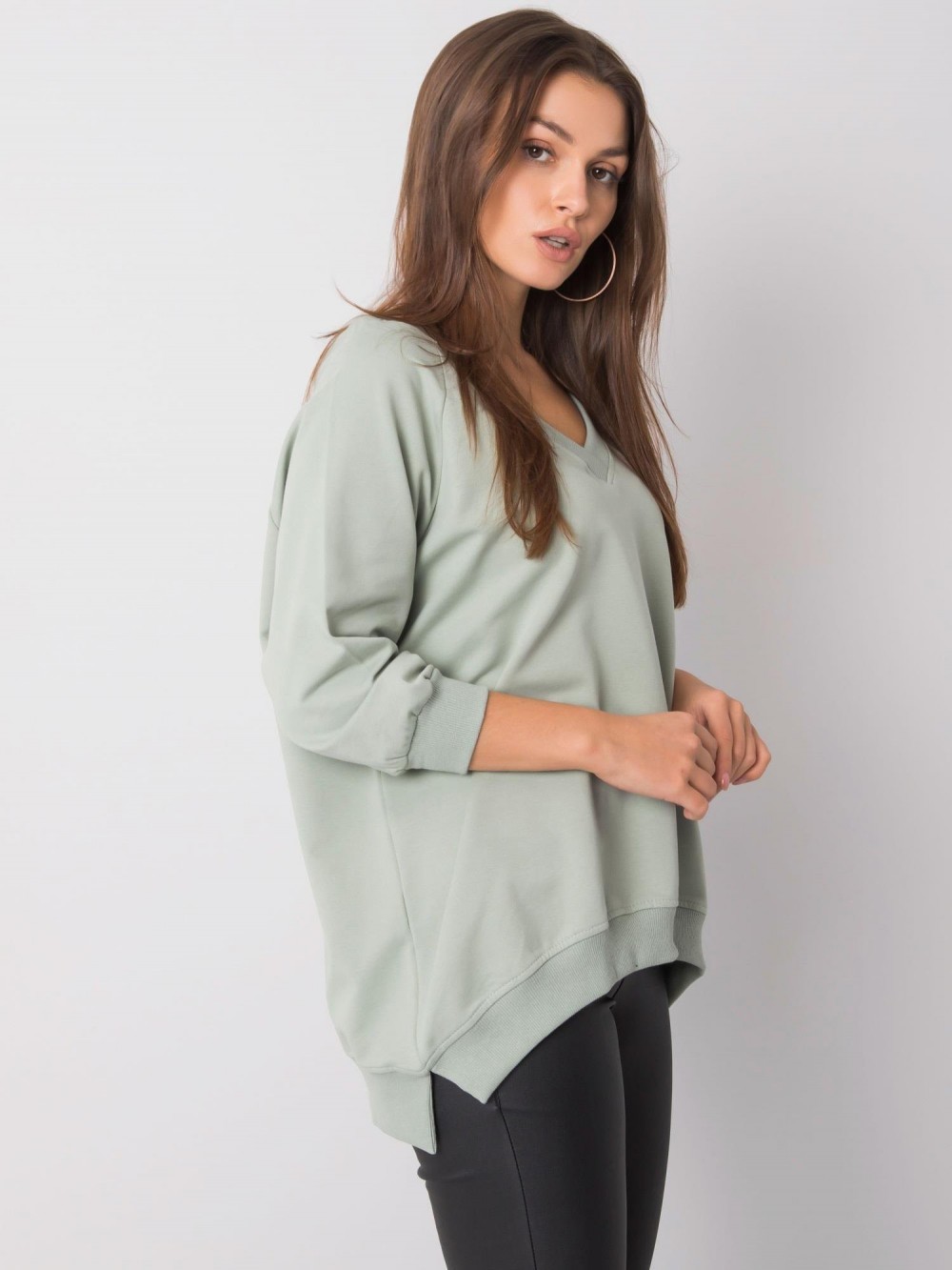 Bluza damska w kolorze seledynowym oversize basic rękaw 3/4 dekolt v-neck Marcela