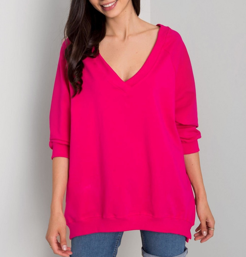 Bluza damska w kolorze fuksji oversize basic rękaw 3/4 dekolt v-neck Marcela