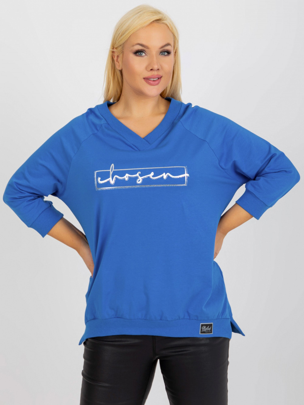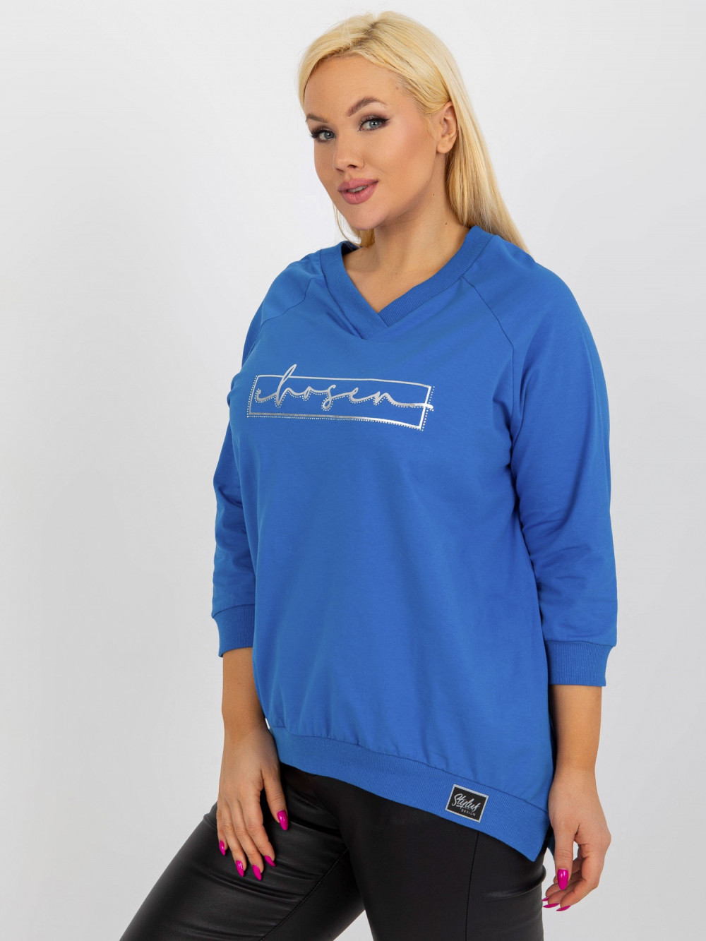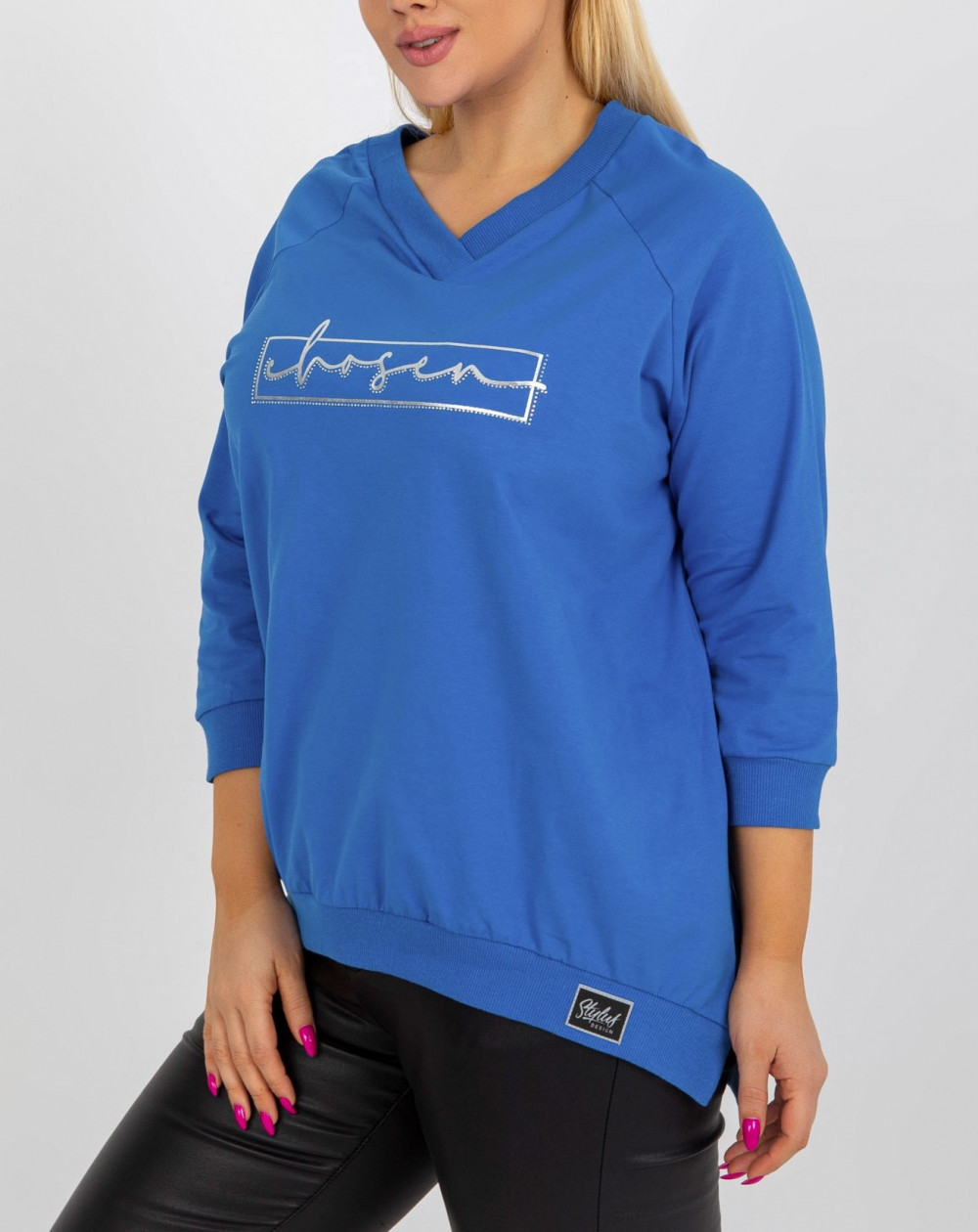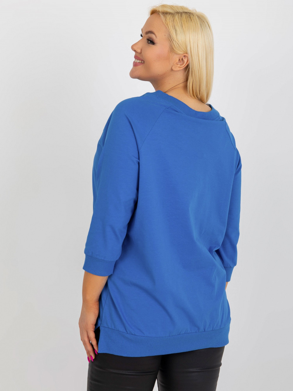 Bluza damska plus size w kolorze niebieskim dekolt V rękaw 3/4 Rafaella